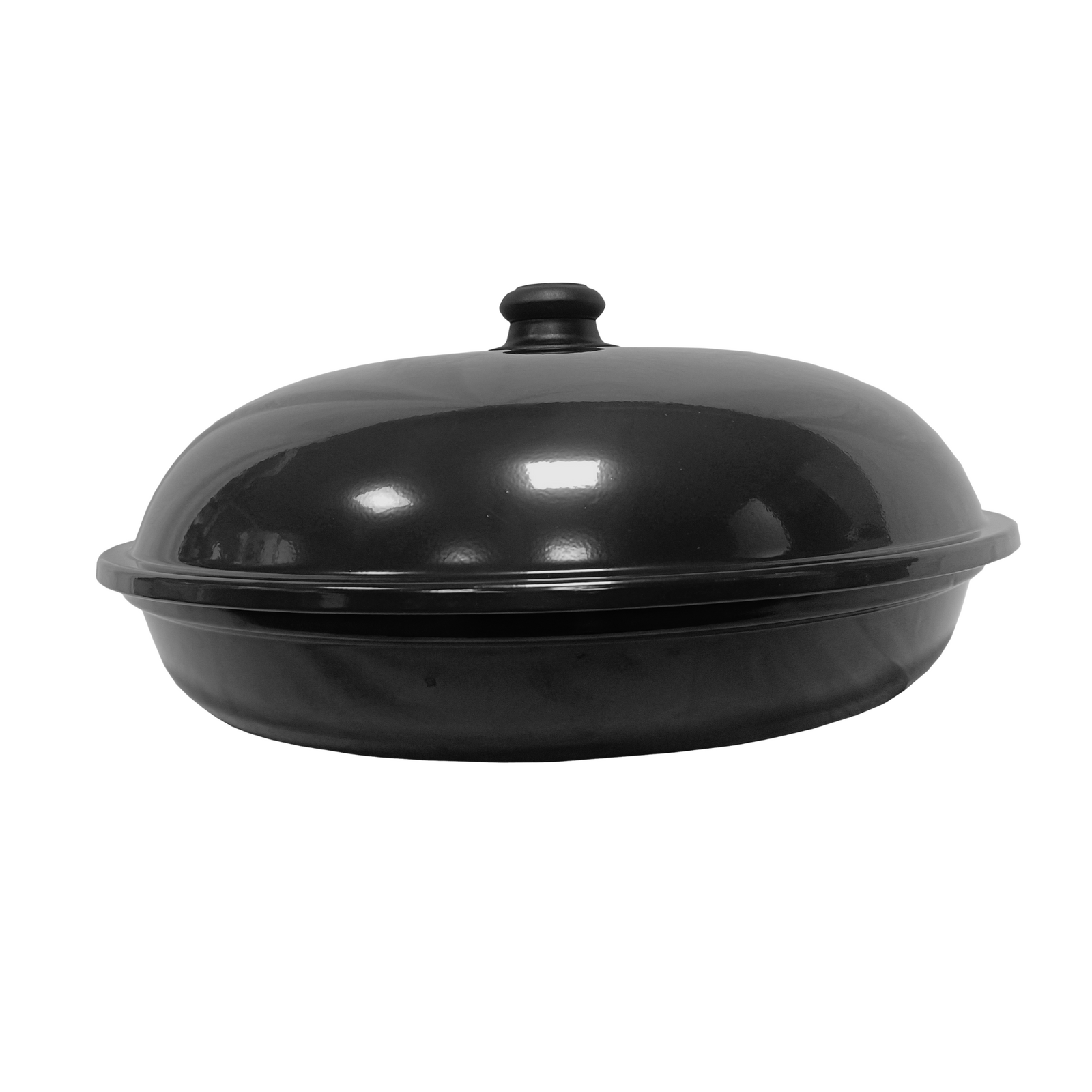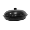 Enamel base with powder-coated top and hi-lid. Keeps hot food covered, warm, and protected from flies. Drains fat for healthier eating Includes wire rack ideal as a cake cooling tray