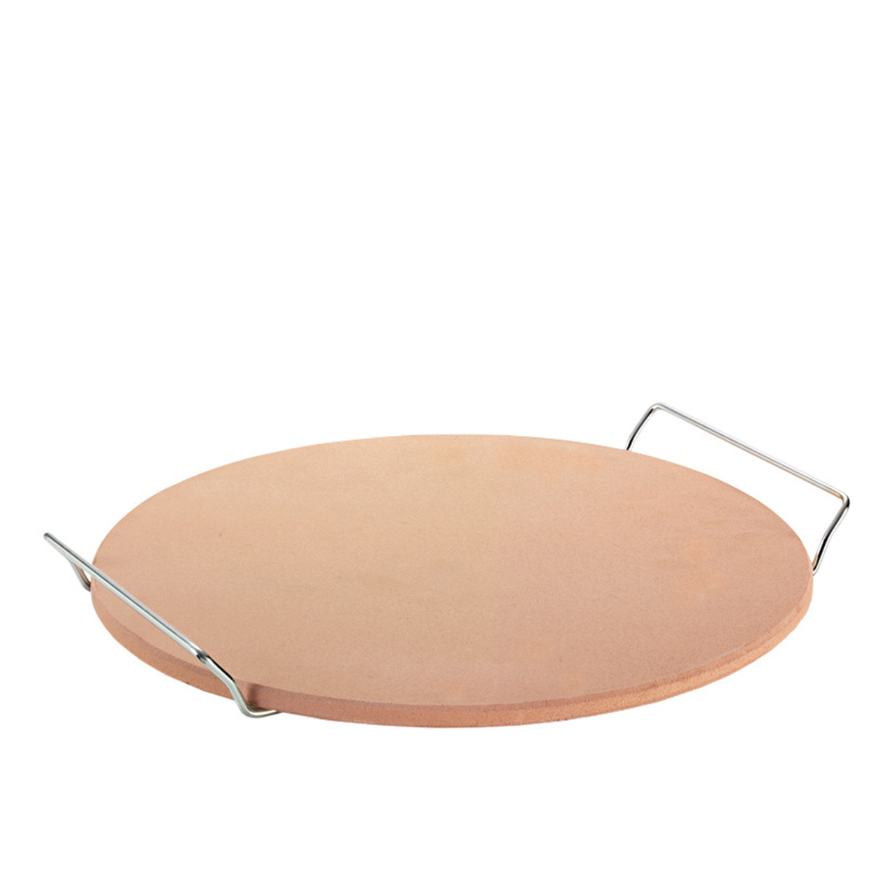 Enjoy the delicious flavour and perfect texture of brick-oven pizza, right from your home oven with the Avanti® Pizza Baking Stone with Rack. Made from natural kiln fired clay, the sturdy smooth ceramic disc absorbs excess moisture and distributes heat evenly so there are no hot spots, producing light crispy crusts just like an authentic brick pizza oven. Versatile, use it to also bake crusty bread, crunchy cookies, crispy tortilla and delicious croissants. It features a convenient carrying rack that allows you to bring the stone to the table, so serving is easy. Suitable for both conventional indoor and outdoor ovens, the Baking Stone is excellent for re-heating pre-baked items such as frozen pizzas, pasties and pies.
